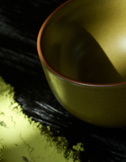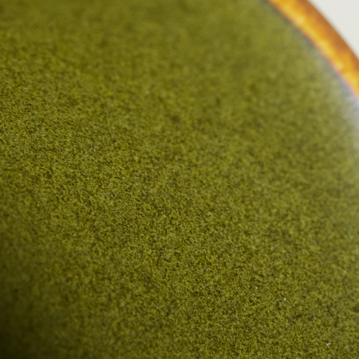 A timeless Tea Dust born from the precise reduction of iron-rich minerals. Unlike flat chemical pigments, this ancient natural glaze requires exact temperature control at 1300°C to crystallize the iron oxides without becoming glossy. It represents a profound stillness, forming a matte, deep green landscape perfectly speckled with golden-brown “tea dust.”