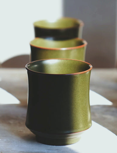 Sourced from iron-rich minerals, this high-fired glaze manifests as a matte, ancient green.